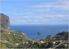 Steilküsten und hohe vom Meer aufsteigende Berghänge wechseln sich ab, auf dem Weg entlang der Nordküste zu der Ortschaft São Vicente.